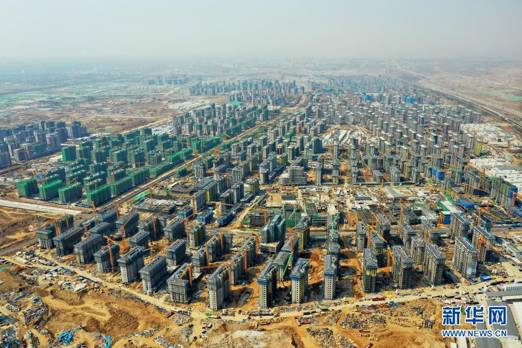 4月8日拍摄的雄安新区容东片区安置房项目建设现场(无人机照片)。
