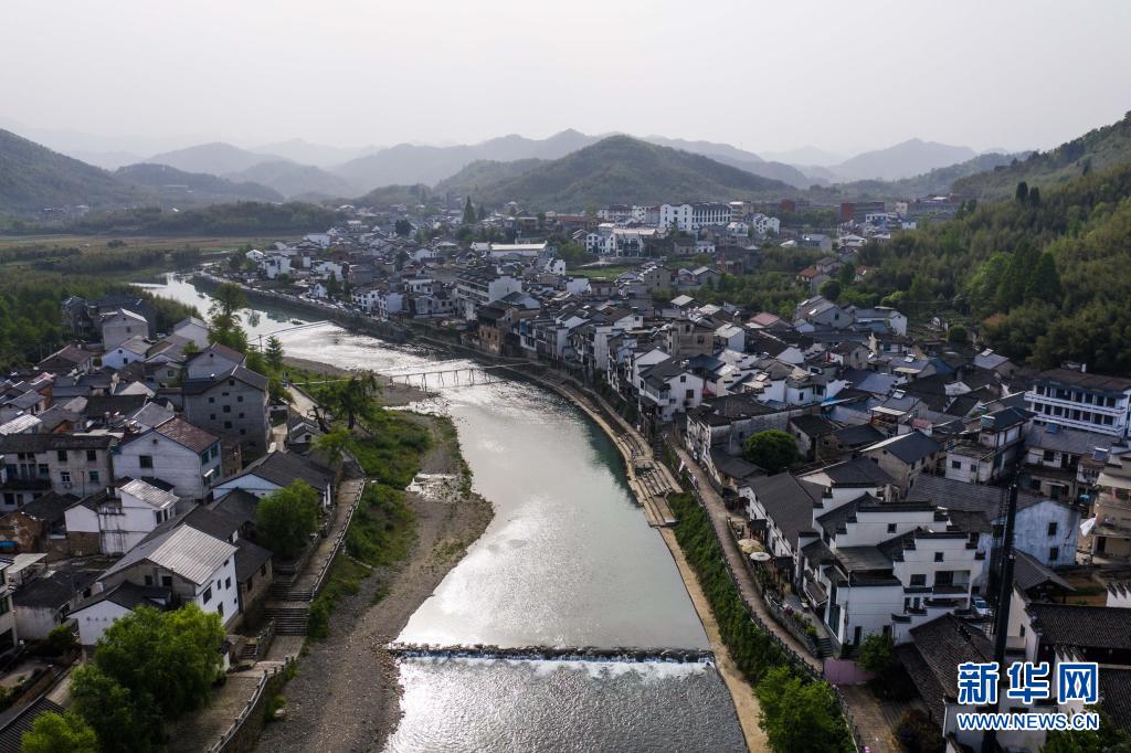 这是河桥古镇一角(4月17日摄,无人机照片)。