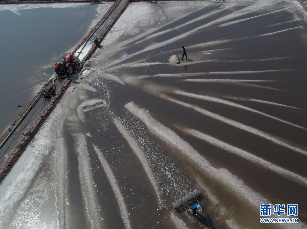 时下,全国著名的海盐产区河北省黄骅市开始春季扒盐工作,工人们利用晴好天气加紧收获春盐。