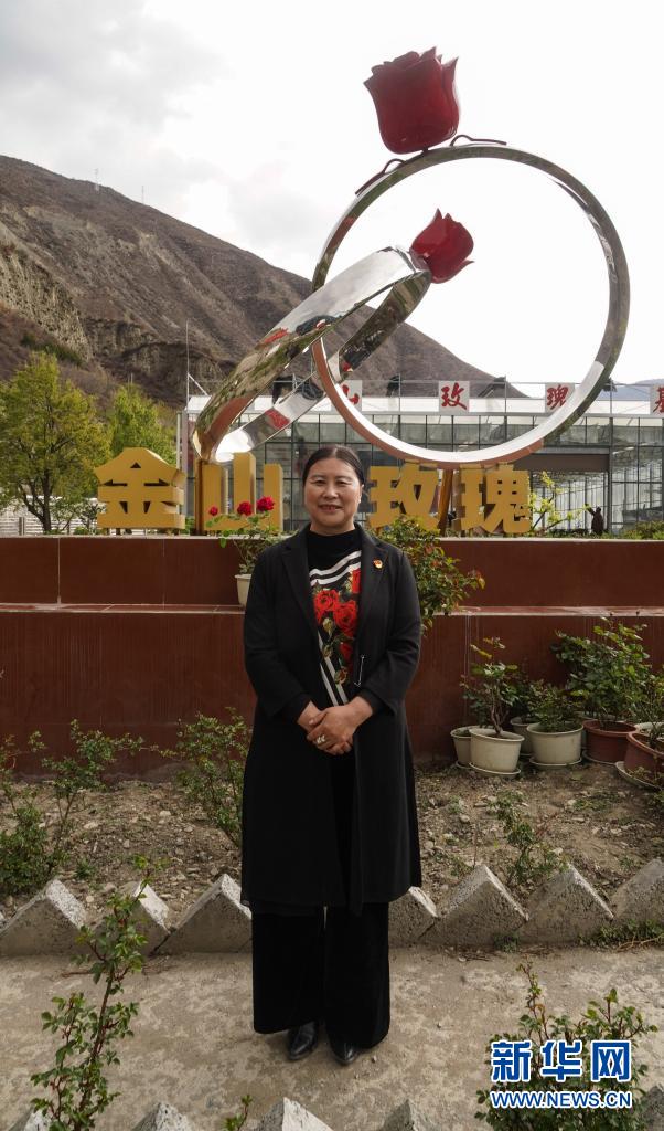 陈望慧在自己创办的金山玫瑰产业基地前留影(4月14日摄)。新华社记者 王曦 摄