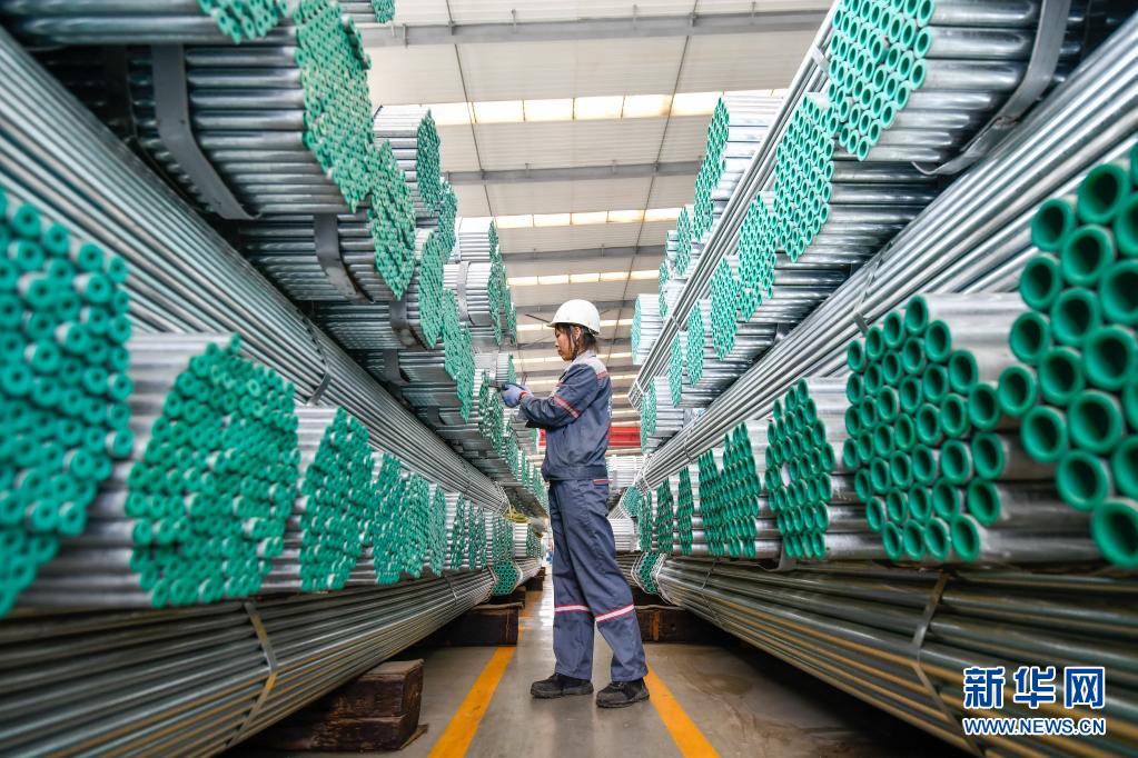 5月7日,工人在由天津转移而来的唐山正元管业有限公司车间内对管材进行保护处理。