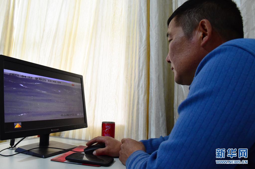 阿达比亚特通过监控观测普氏野马活动情况(4月22日摄)。