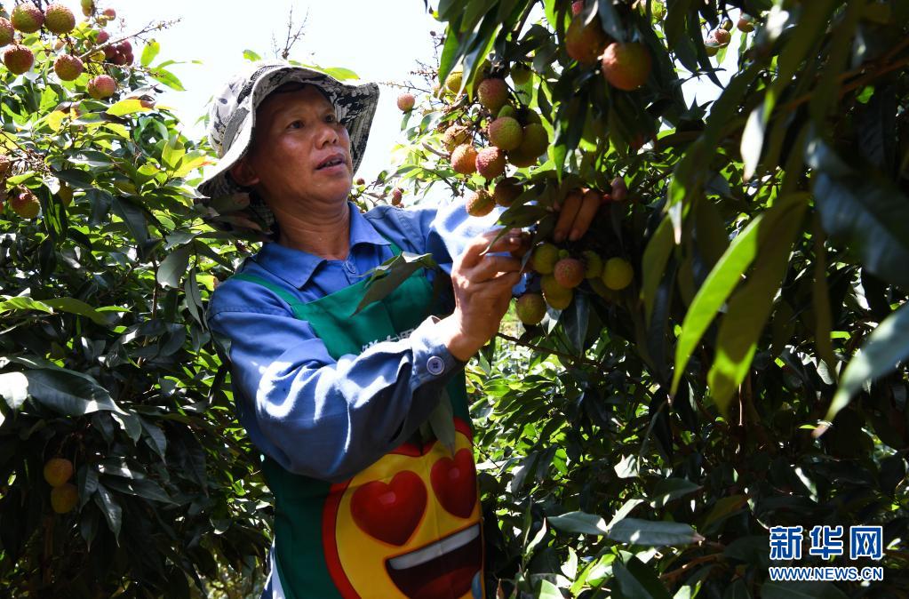 5月14日,在海南省文昌市东路镇南排村荔枝园,果农在采摘荔枝。