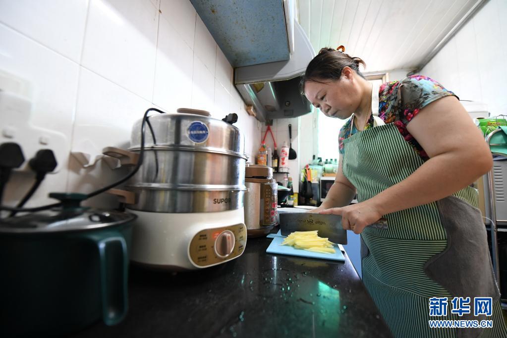 5月15日,陈键宁在厨房切土豆丝。
