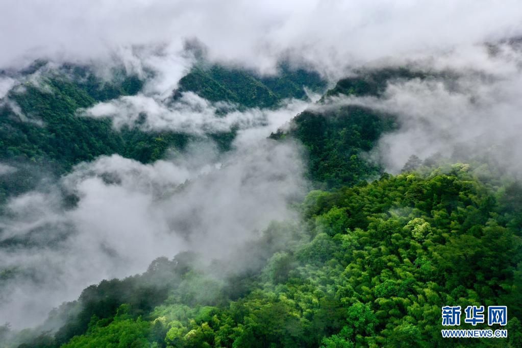 5月17日,武夷山国家公园桐木村附近群山云雾缭绕(无人机照片)。