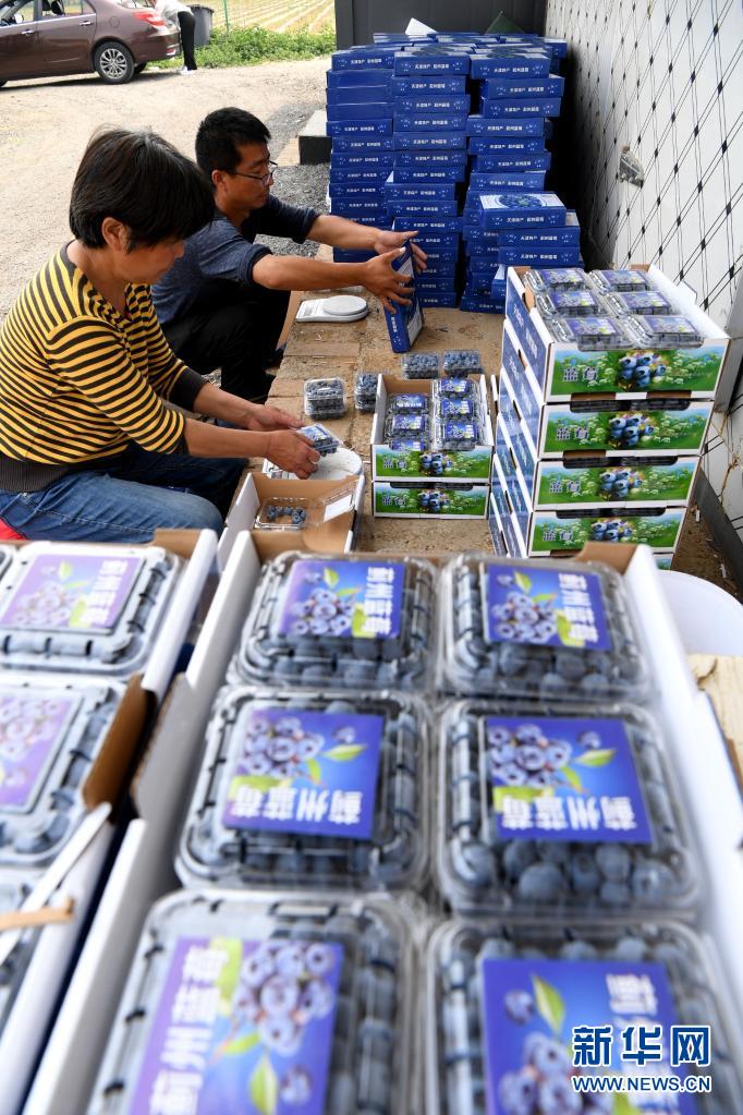 5月20日,在天津市蓟州区马伸桥镇蓝莓产业园,果农在包装蓝莓。