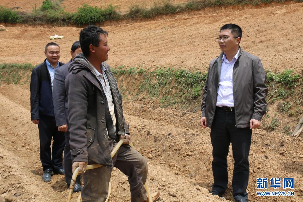 聂金辉(右一)在剑川县弥沙乡调研时和当地群众交流(2016年4月28日摄)。