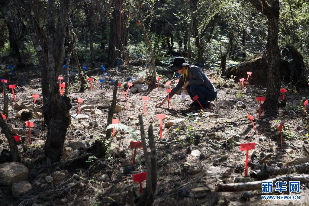 7月23日,在波密县扎木镇东若村林地,工作人员在管护林下抚育的藏天麻。