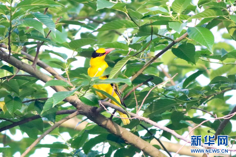三垟湿地内拍到的黑枕黄鹂。张永普摄