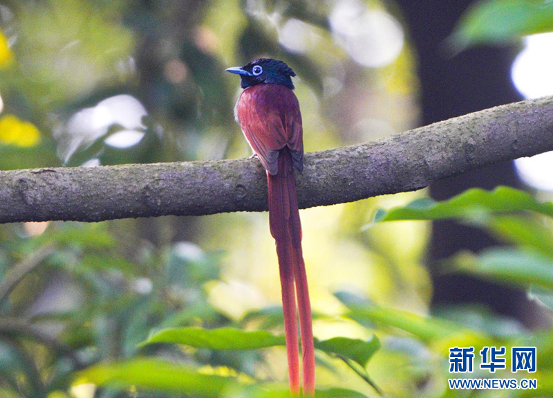 寿带外观漂亮,繁殖季节雌雄差异明显,雄的有两条超长的中央尾羽,显得仙气十足,另外雄性寿带还有比雌性更为醒目的蓝色眼圈。