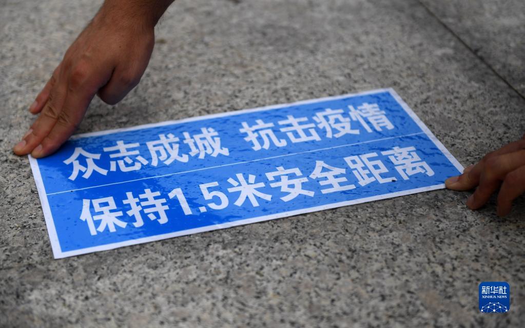 8月31日,工作人员在河北省永清县第二中学食堂前粘贴标识。