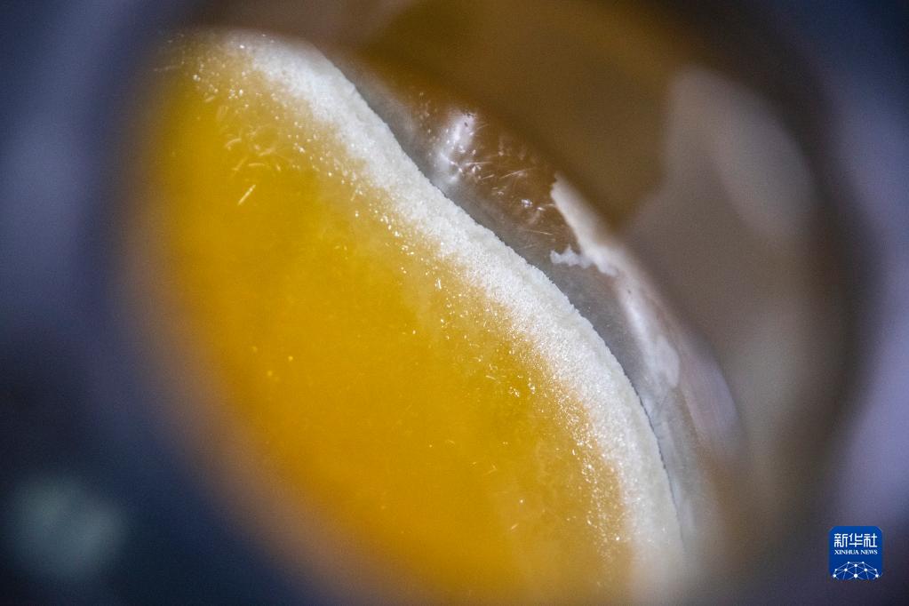 这是9月10日在重庆酉阳县板溪镇拍摄的昆药集团重庆武陵山制药有限公司的青蒿素粗晶结晶罐(白色的是青蒿素结晶)。