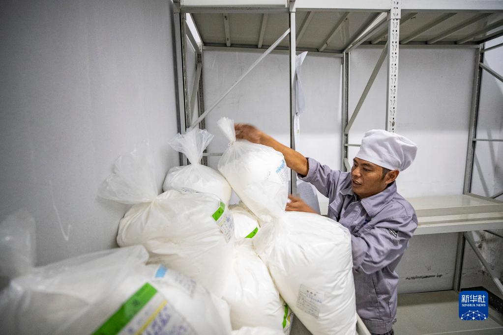 9月10日,在重庆酉阳县板溪镇,昆药集团重庆武陵山制药有限公司的员工在码放青蒿素粗晶。