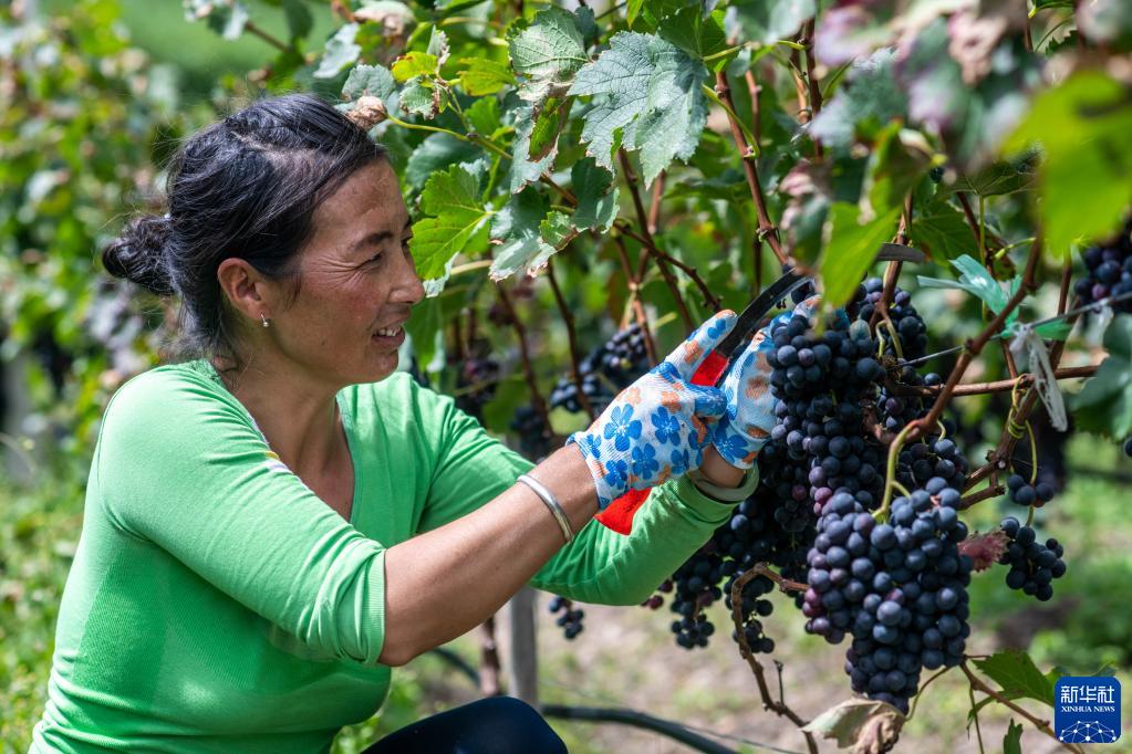 9月14日,云南省迪庆藏族自治州德钦县云岭乡红坡村农民在田里采摘葡萄。