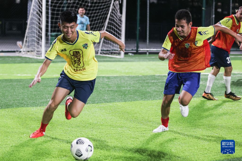 这是海南海龙足球队队员在训练中(摄于9月13日)。
