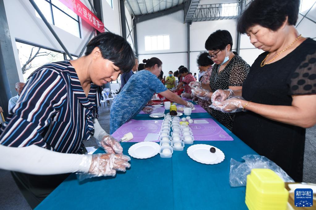 9月26日,村民百姓“邻里节”现场学习月饼制作。