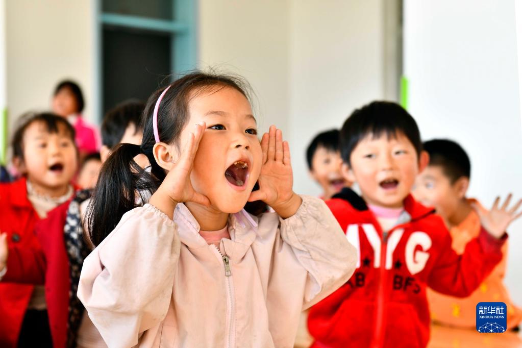 10月12日,在菏泽市东明县尚庄社区幼儿园,小朋友在学唱儿歌。