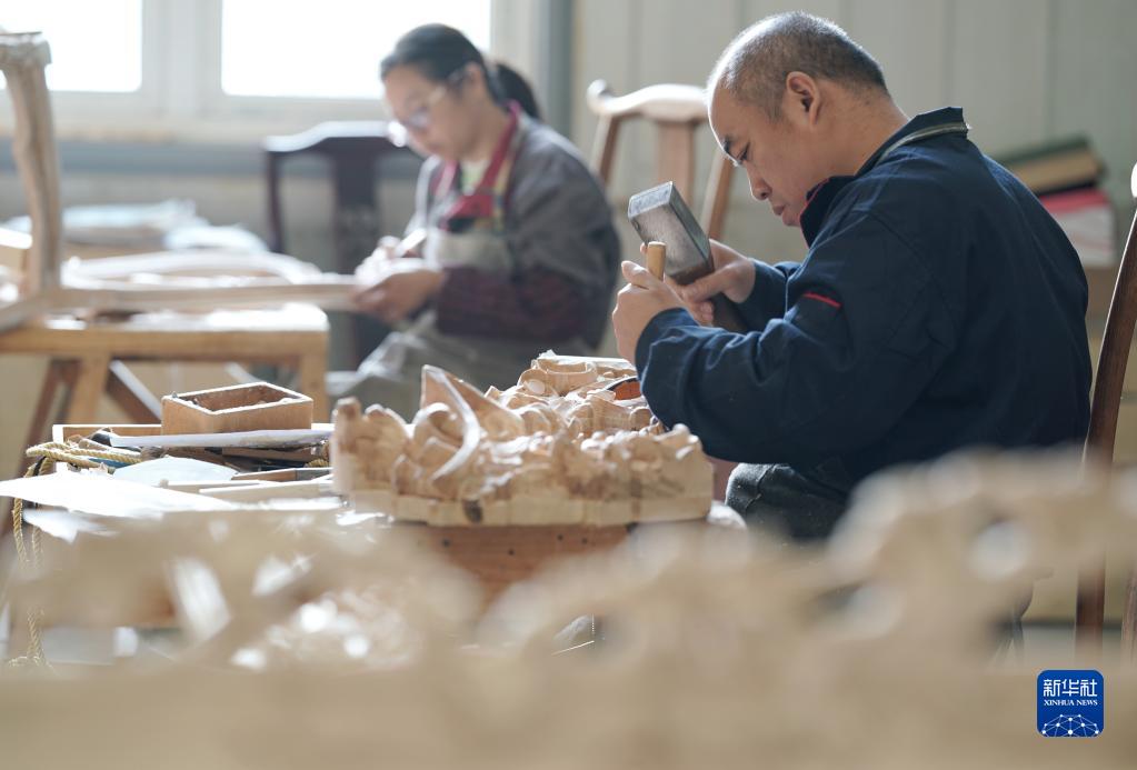 10月18日,河北省唐山汉沽管理区一家具制造企业工人在生产车间工作。