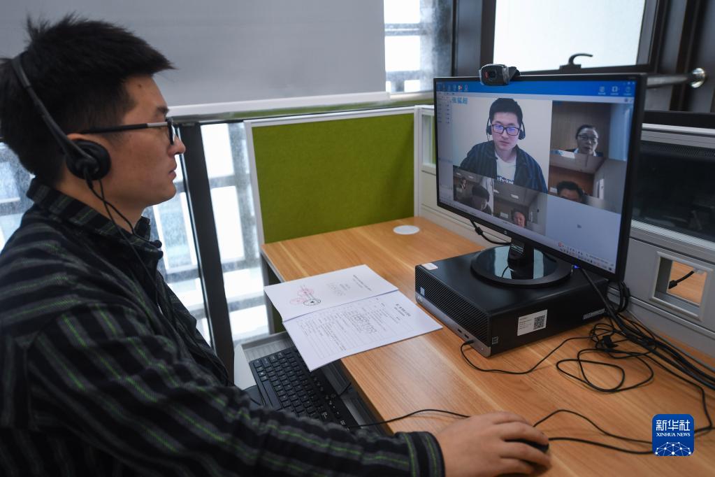 10月21日,在杭州市临安区行政服务中心的交易中心评标室,本地评标专家和外地评标专家共同进行远程线上评标。