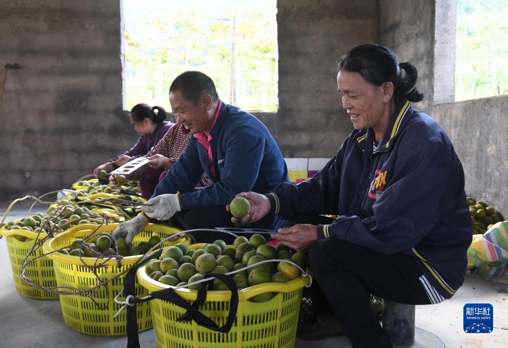10月27日,在广西灵川县灵田镇正义村,当地农民分拣罗汉果。