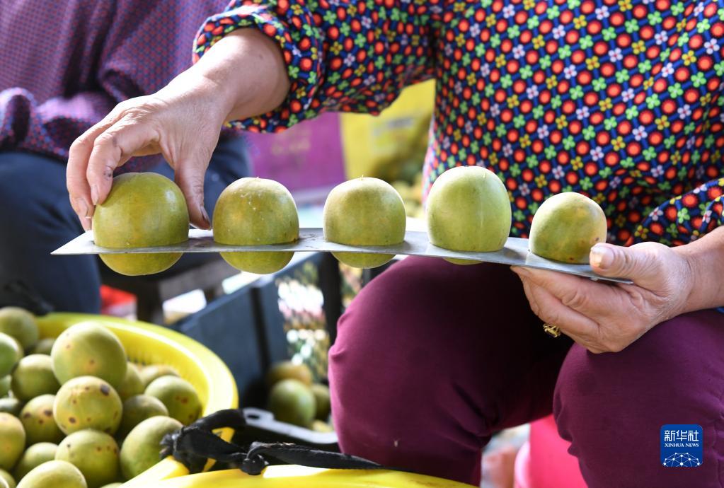 10月27日,在广西灵川县灵田镇正义村,当地农民分拣罗汉果。