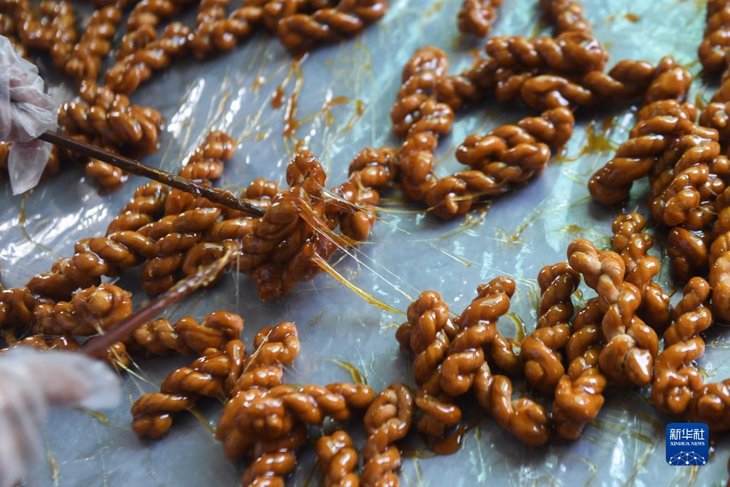 10月31日拍摄的包裹红糖汁制成的传统食品——红糖麻花。