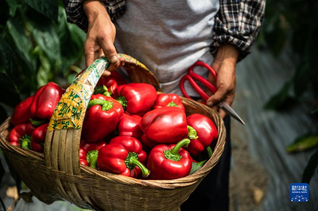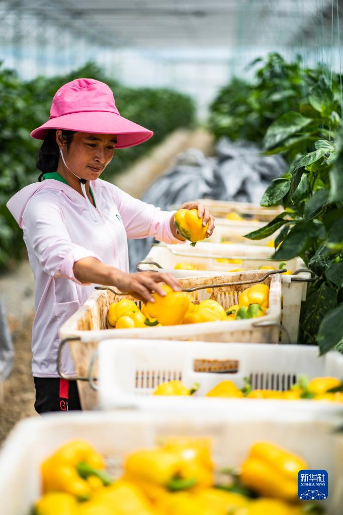 当地村民在贵阳农投集团花溪蔬菜基地采收的柿子椒(7月30日摄)。新华社记者 陶亮 摄