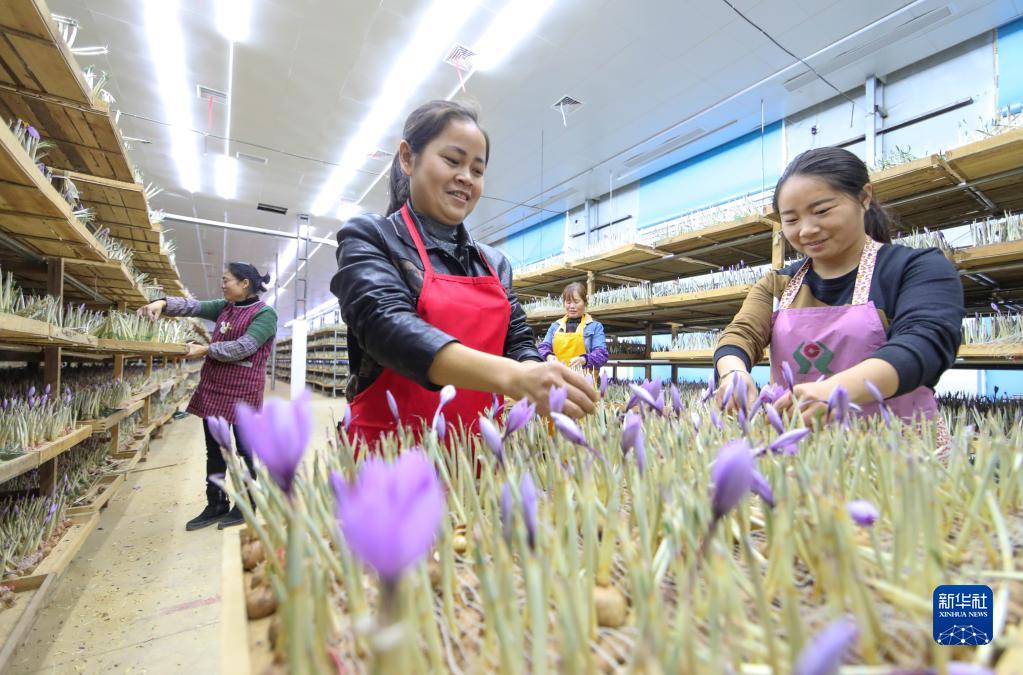 近日,贵州省黔东南苗族侗族自治州岑巩县羊桥土家族乡祝坝村种植的西红花迎来采收旺季,村民忙着采摘、抽丝、烘烤、包装。近年来,岑巩县依托东西部协作平台,在浙江省建德市的对口帮扶下,大力发展西红花种植,吸纳当地村民到基地务工。