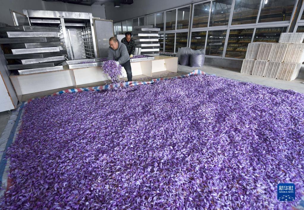 从11月初开始,浙江省建德市三都镇圣江村迎来西红花丰收的时节,花房里一派热闹景象,工人们忙着进行抽花丝、烘干等加工工作。据介绍,今年西红花产量高、品相好、花丝粗壮,头期花丝每公斤售价约三万元。