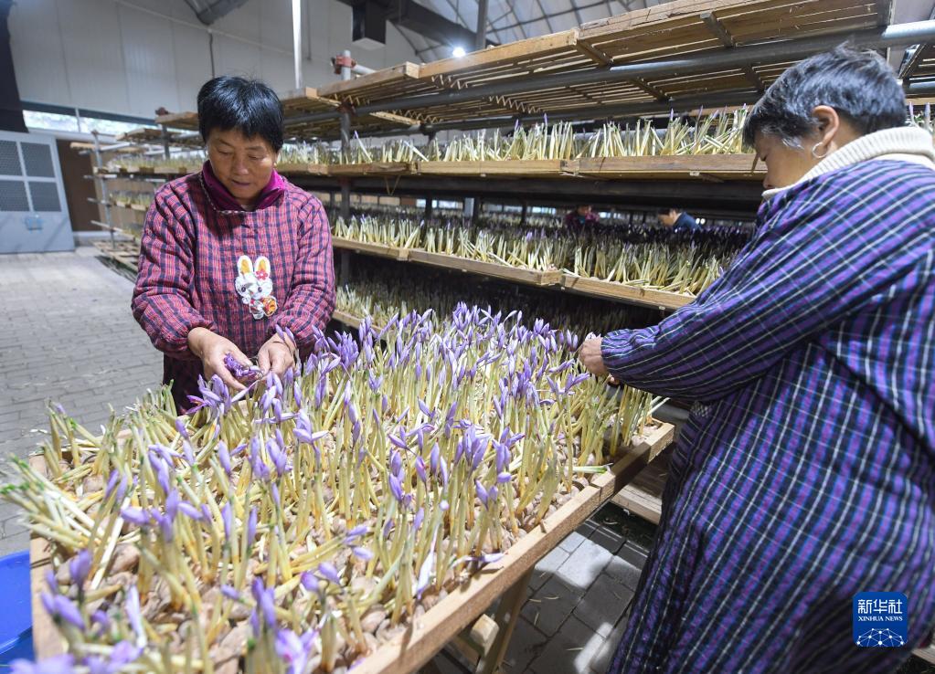 从11月初开始,浙江省建德市三都镇圣江村迎来西红花丰收的时节,花房里一派热闹景象,工人们忙着进行抽花丝、烘干等加工工作。据介绍,今年西红花产量高、品相好、花丝粗壮,头期花丝每公斤售价约三万元。