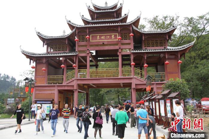 图为2021年国庆假期,游客在寨沙侗寨游玩。 李俊 摄