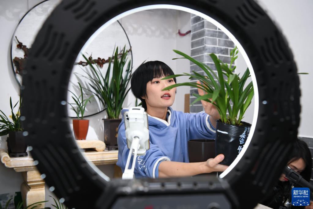 11月17日,在广东韶关翁源县德芳兰园有限公司,网络主播在推介兰花。