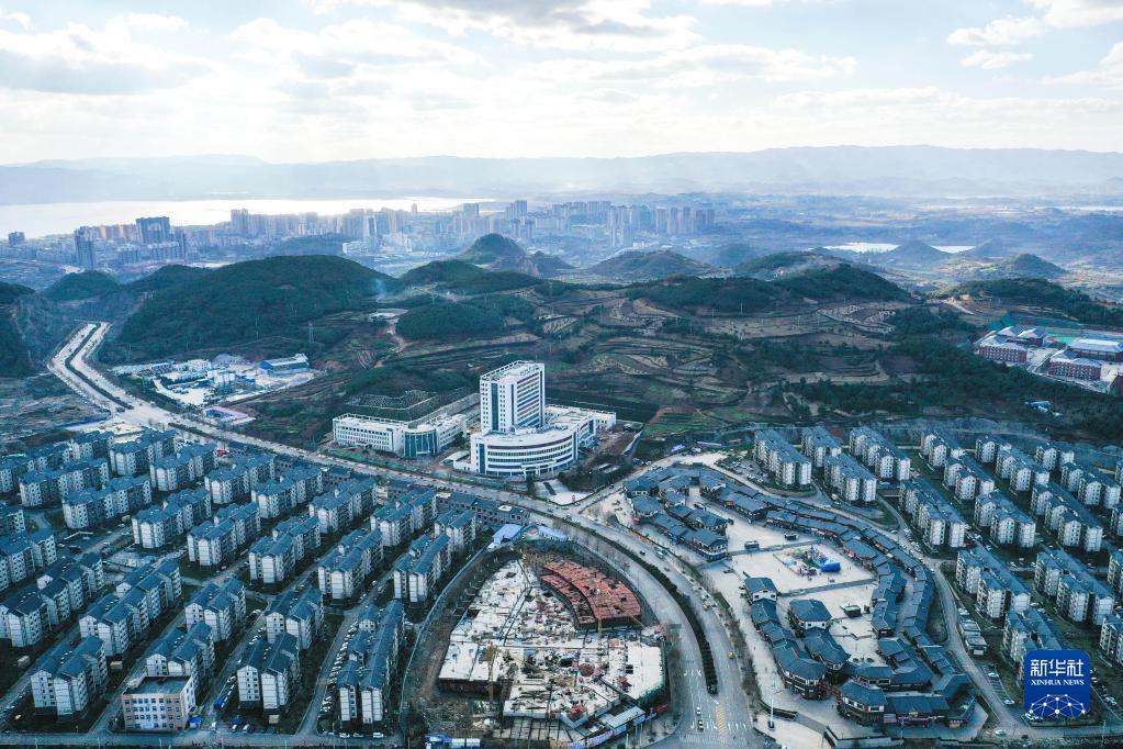 这是贵州省威宁县五里岗街道朝阳新城和阳光新城易地扶贫搬迁安置小区(11月28日摄,无人机照片)。