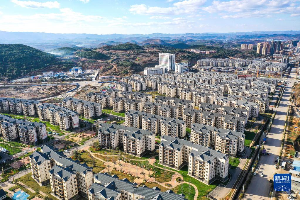 这是贵州省威宁县五里岗街道朝阳新城易地扶贫搬迁安置小区(11月28日摄,无人机照片)。