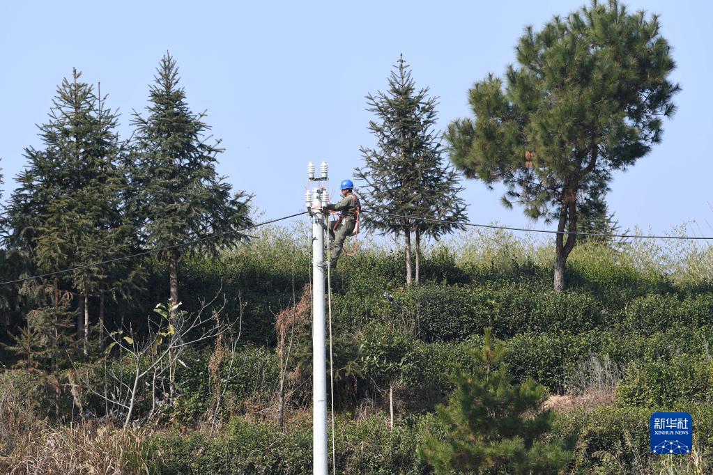 12月9日,国网岳西县供电公司施工人员在岳西县中关镇对电网进行升级改造。