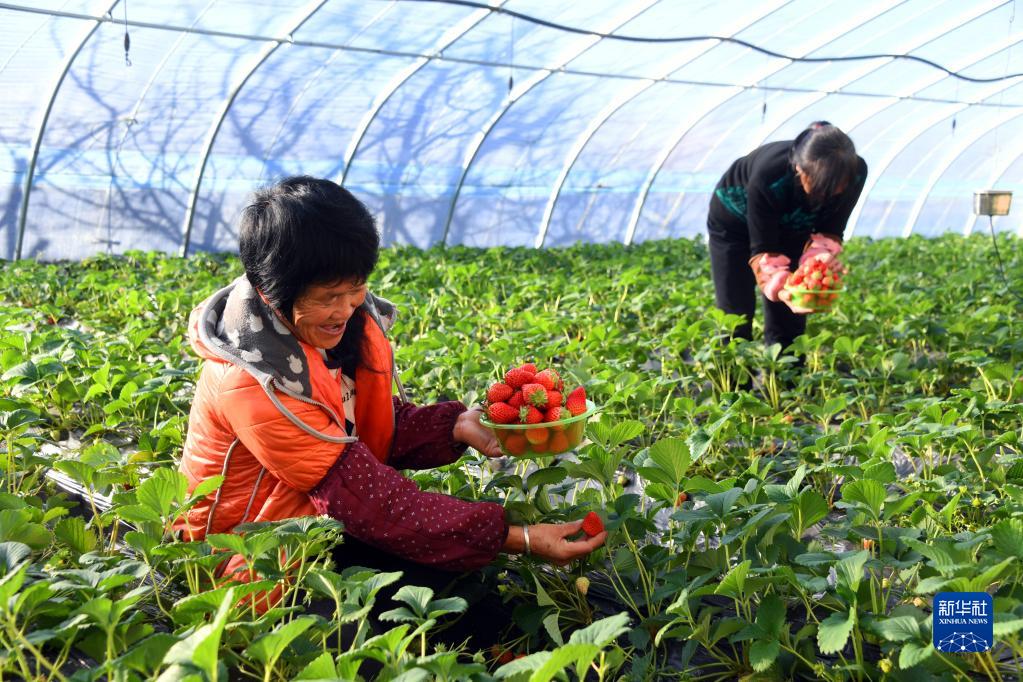 近日,北京市平谷区马坊镇草莓种植大棚中的草莓进入成熟期,当地果农采摘分拣草莓,供应元旦、春节市场。