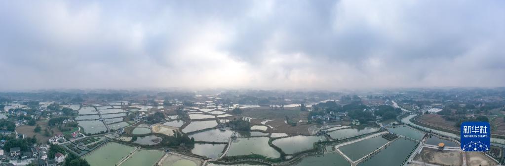这是1月5日拍摄的重庆市梁平区川西渔村景色(无人机全景照片)。
