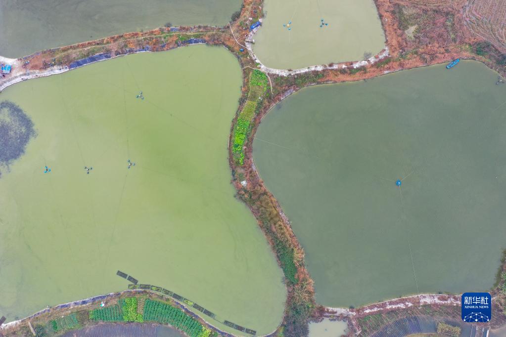 这是1月5日在重庆市梁平区川西渔村拍摄的部分养殖鱼塘(无人机照片)。