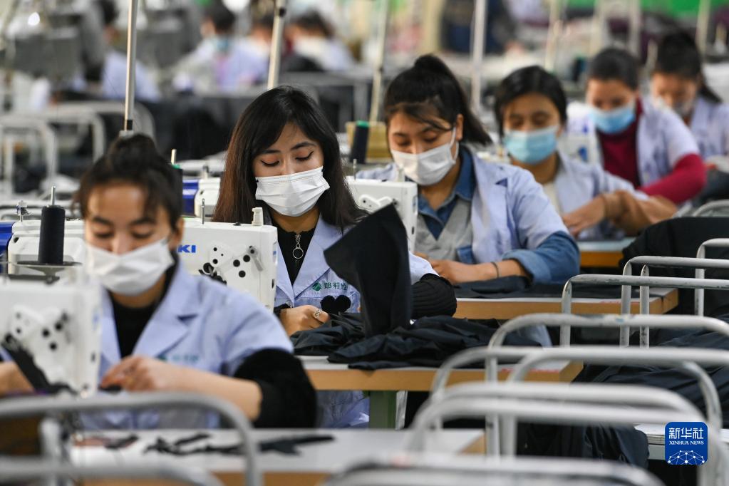 1月11日,在新疆墨玉县产城融合园,新疆耶莉娅服饰有限公司的员工在制作服装。新华社记者 丁磊 摄