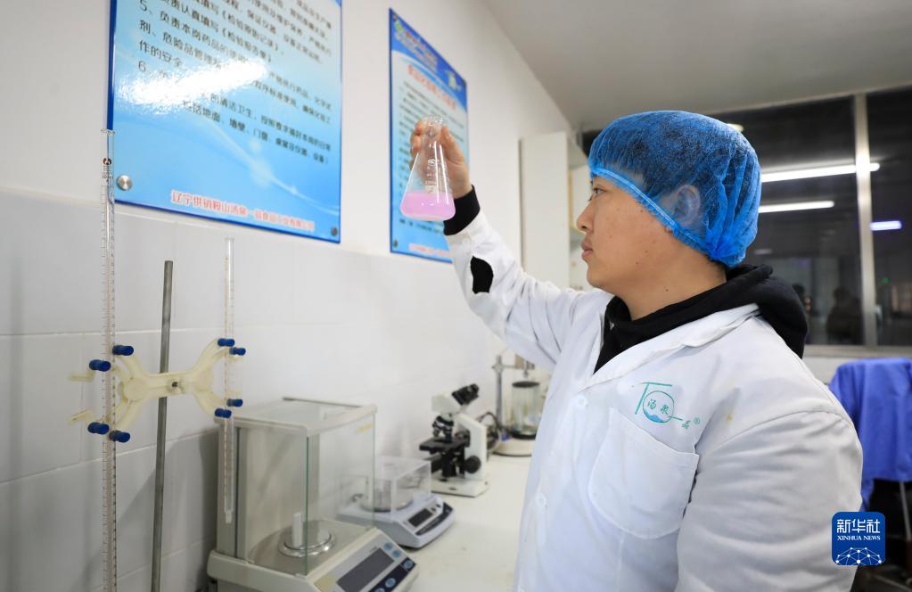 1月10日,鞍山市千山区汤岗子村村办酸菜厂的工作人员在检测酸菜的酸度。