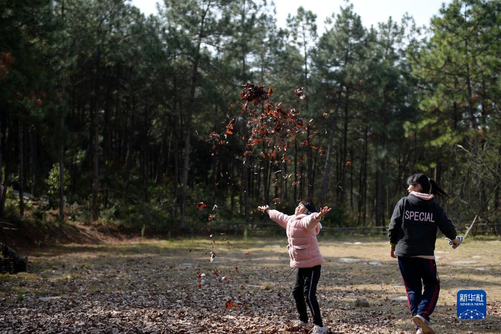1月19日,小朋友在大元村玩耍。新华社记者 陈振海 摄