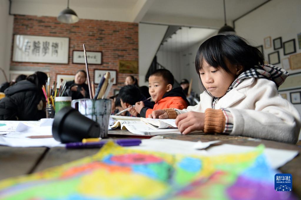 1月19日,小朋友在大元社里读书。新华社记者 陈振海 摄