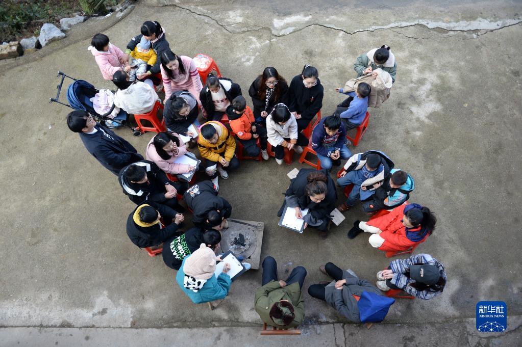 1月19日,周燕带着大元社的孩子们来到村里两名瑶族老人家中,了解过年习俗。新华社记者 陈振海 摄