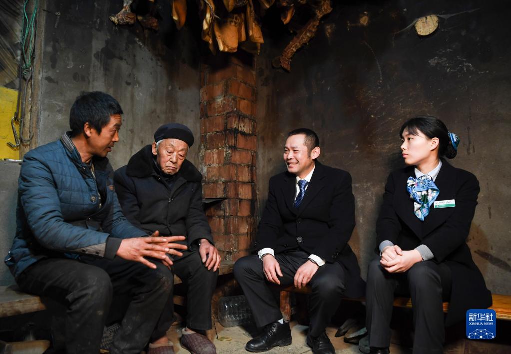 1月20日,中国农业银行重庆武隆支行“三农”客户经理傅小康(右二)在武隆区双河镇木根村了解蔬菜种植户缪传海(左一)的生产经营计划及其资金需求。