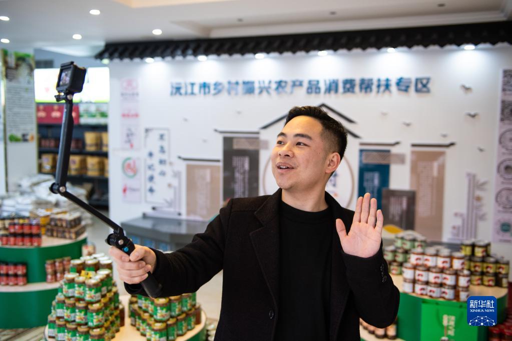 2月22日,蒋连超在湖南益阳市沅江高新技术产业园区录制短视频。25岁的蒋连超,2019年从湖南城市学院测绘工程专业毕业,放弃了进入大型国企的机会,成为湖南省沅江市胭脂湖街道南竹山村的“乡村合伙人”。凭借自己在校期间积累的丰富创业经验,他带领村民办农庄、搞养殖,还组建团队实现了当地农产品销售的网络化运营。