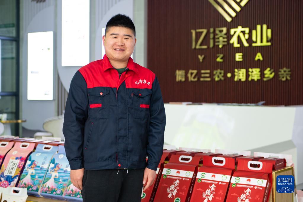这是2月22日在湖南常德市鼎城区谢家铺镇亿泽生态农业科技有限公司拍摄的陈帅宇。27岁的陈帅宇,2016年在出国工作和投身农业之间选择了后者,拿出自己大学时期的创业收入开办农资店,逐步建立起集农资全程配送、农业社会化服务和水稻种植、加工、销售于一体的全链条企业。2021年,企业仅品牌大米一项,就实现销售收入3000万元。