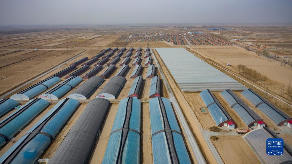 这是3月8日拍摄的宁夏贺兰县隆源村的蔬菜种植园区(无人机照片)。