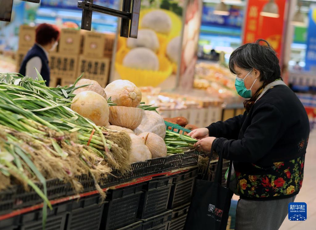 3月31日,市民在世纪联华中环店购买蔬菜。 新华社记者 刘颖 摄