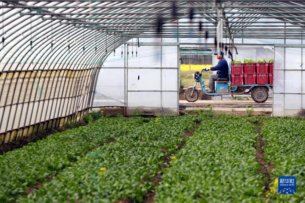 3月30日清晨,在青浦区朱家角镇安庄村,采摘的蔬菜被运出田间。 新华社记者 刘颖 摄