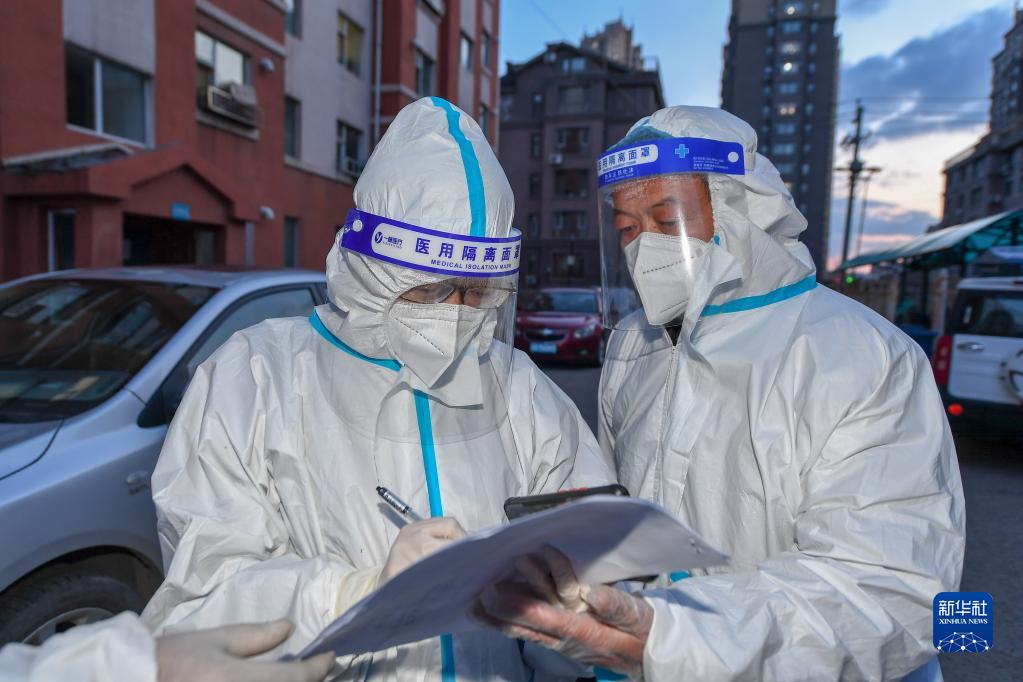 3月31日,在吉林市昌邑区哈达湾街道矿建社区,工作人员核对“蔬菜包”配送地址。